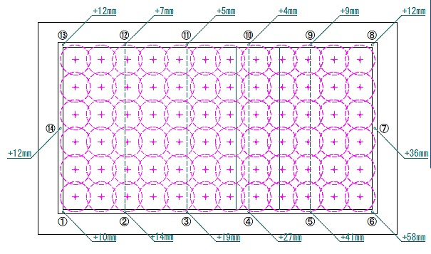 過去にクラック補修を何度も繰り返していることから、計画段階からそれらが障害になって完全に修復するのは不可能なことは分かっていた。計画では今後沈下進行を止める目的で部分修繕ではなくプール下部地盤全体を不均一な状態から安定した均一な状態にする為に全体に支持力増強注入を行うものであった。 結果、全体的に数㎜リフトアップし同時に変形傾斜もクラック補修されて時期程度まで復元することができた。