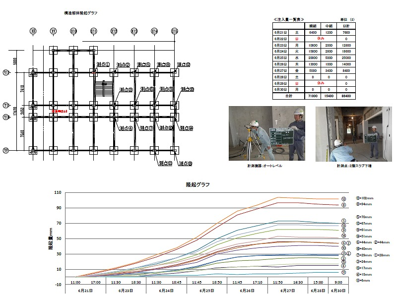 校舎一部約250㎡で5/1000の不同沈下が確認された。